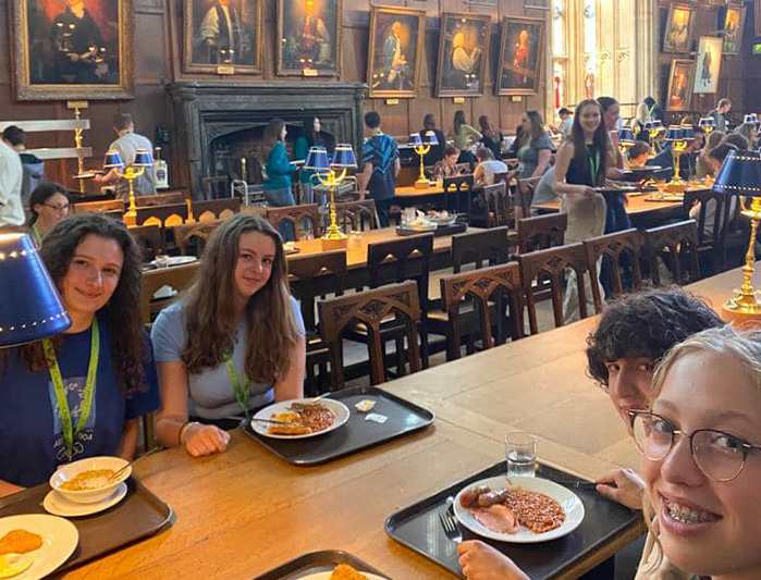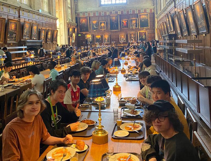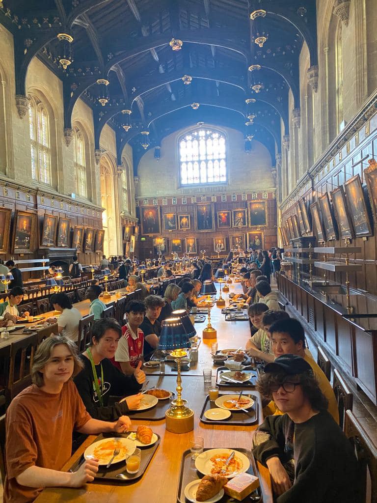 The students were up bright and early to depart promptly at 7.30am from school. After a 3 hour journey and a short walk to the college, the pupils arrived and dropped off luggage before a fascinating and informative guided tour of Christ Church College. The tour guides pointed out many interesting facts about the history of the college and the countless world class alumnae produced by this prestigious university. The tour also showed the accomodation used for first year and second year within Christ Church, the magnificent dining hall which inspired Harry Potter, the multitude of green spaces and gardens as well as the Junior Common Room (a social area for students) and lecture halls.