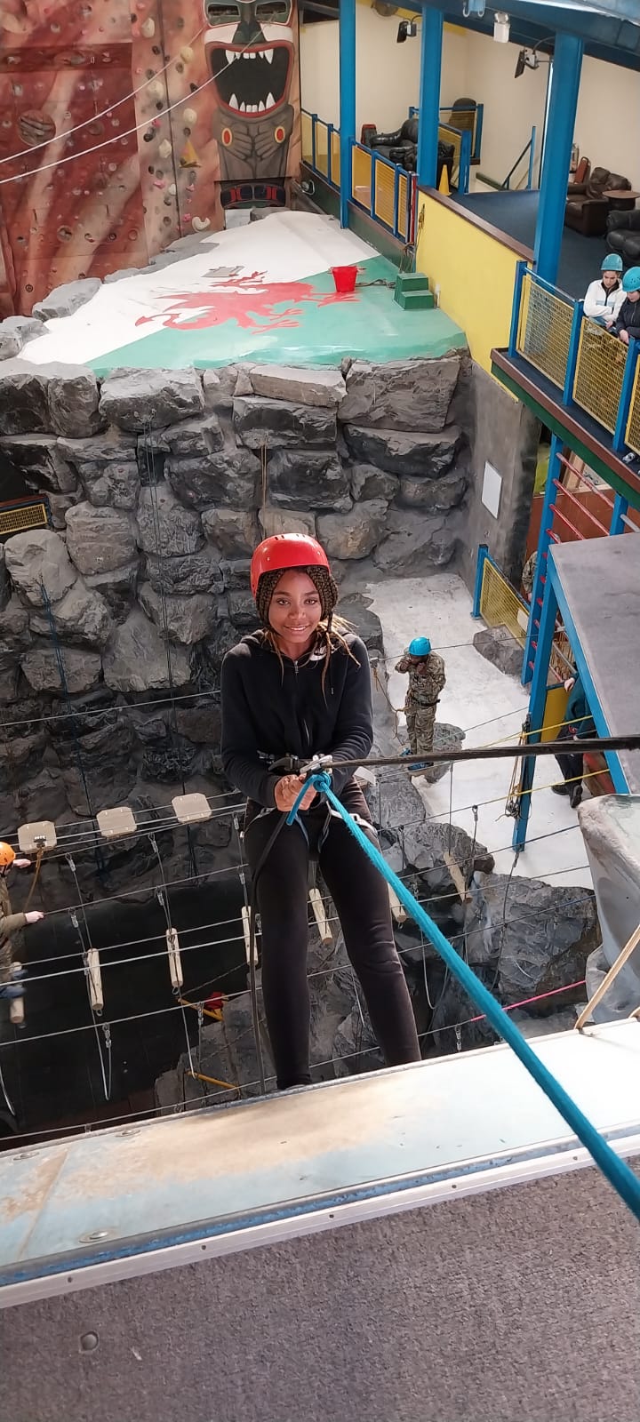 The residential course focuses on building confidence and team work in a number of different activities that take place outside and indoors. Despite the freezing weather the group managed to walk up Pen Y Fan, climb to great heights in the local climbing centre and return to ground very quickly on the zip wire, canoe along canals and jump into freezing rivers.