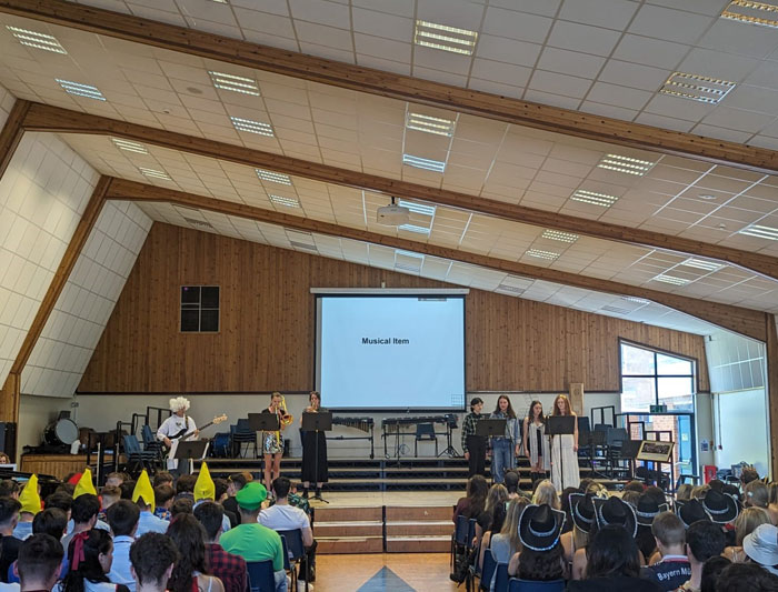 The assembly featured a series of student awards presented by the Student Leadership team, recognising the outstanding achievements and contributions of Year 13 students. Additionally, the assembly was graced with a remarkable musical performance. A group of talented Year 13 students formed especially for this occasion, delivering a stunning rendition of Amy Winehouse's "Back to Black," showcasing their exceptional musical abilities.